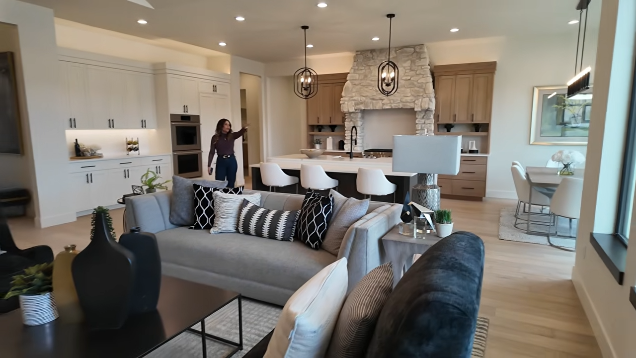 Step inside and you get an immediate “wow” factor. The living space is huge, high-ceilinged, and designed to feel both warm and dramatic.